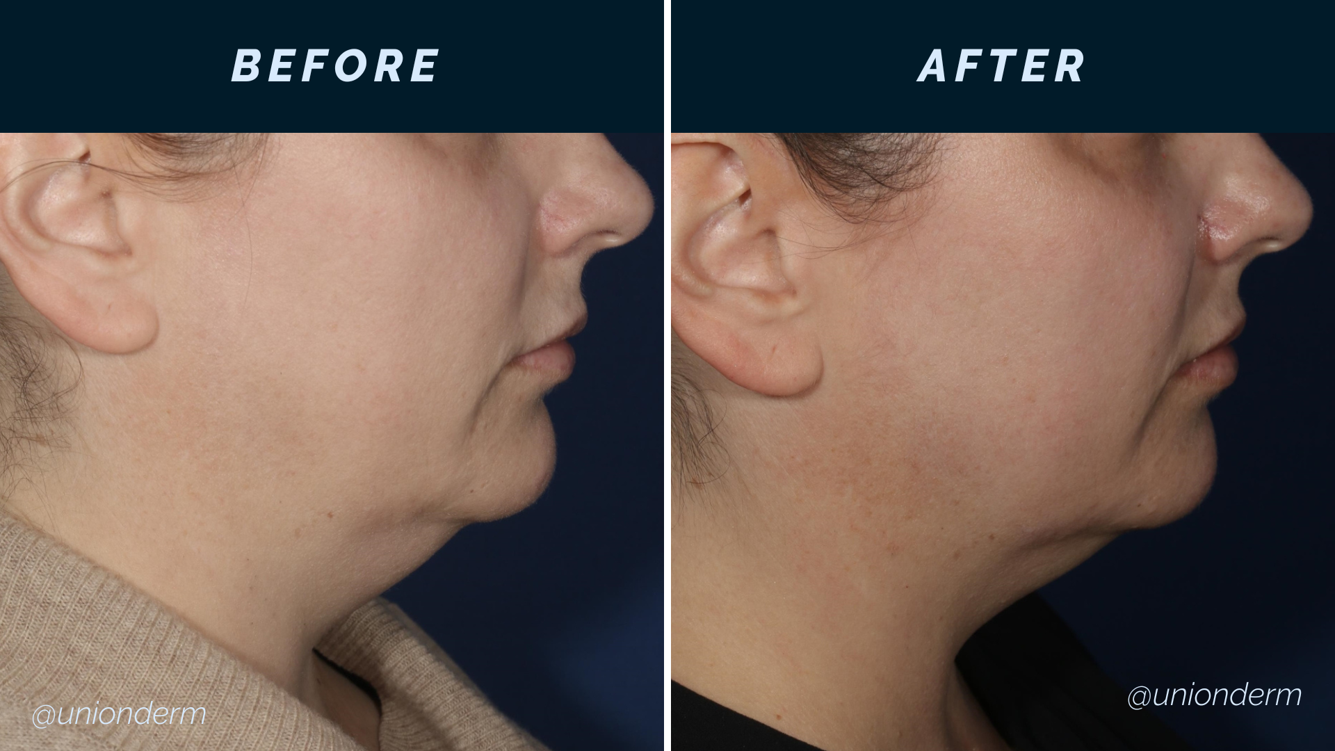 Medical Director Dr. Anne Chapas was involved in the clinical trials that brought CoolSculpting to-market. CoolSculpting is a patented nonsurgical method that utilizes cryolipolysis or fat freezing to reduce fat in targeted areas. The procedure was created to address specific areas of stubborn fat not responsive to diet and exercise, such as the chin. The procedure takes about 45 minutes for the chin and has minimal recovery time. You can resume normal day-to-day activities almost immediately after the procedure. It takes up to 3 months to see the full results of one cycle. UnionDerm also offers “DualSculpting” so that you can simultaneously and conveniently treat your chin fat along with another area of your body.